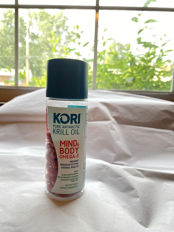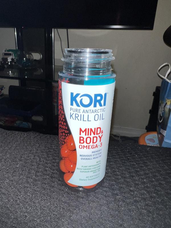 I'm so glad that y'all gave me a chance to try or something that can actually change my life kori krill oil mind and body omega-3 soft gels a perfect no I have had a mega 3 before but it wasn't worth it I love how these don't have any taste to it they aren't those big horse pills and they actually do what they're supposed to do thank you to whoever made this product I do look forward to try and more of your products and I do look for forward to seeing your products i n store