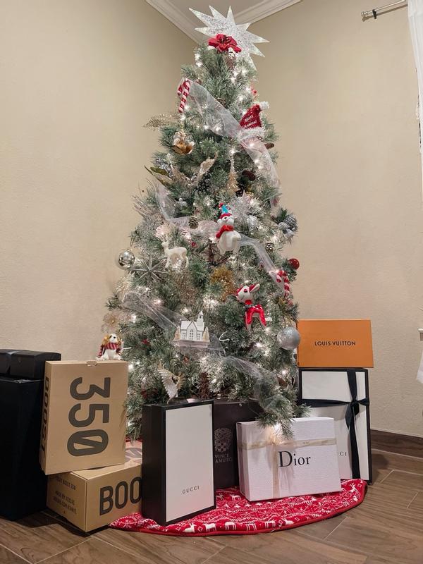 We’re ready for Christmas ya’ll! This will be my baby’s first Christmas and we got a 7.5 ft tree! I love it! Lights all preset so all that’s left is to decorate! It’s very glittery so the frosted tips may not last but I’m forever grateful. Standards packaging for a Christmas tree.