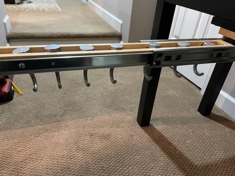 This rev a shelf hanging pots piece is great. Super easy to put together. The hooks are heavy duty. The sliding piece is very heavy duty. Instructions are very easy to follow. I love the natural wood look.