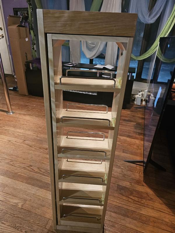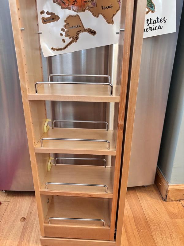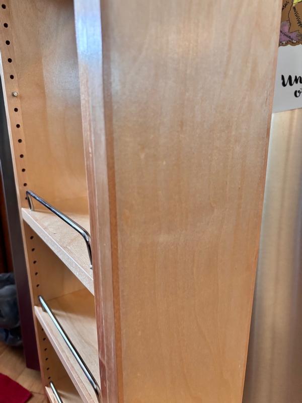 Rev a shelf makes a good product. The cabinet is very sturdy and is exactly as advertised. Slides function great and the door mount is solid. It’s fairly expensive for what it is but it’s a product you can trust and stand behind if installing professionally and will last a long time. Install is straightforward and the finish quality is very nice. This pull out shelf is a great way to organize all those bottles of spices that live all over the kitchen. It is also a great way to use those super skinny cabinets near the oven. Smooth mechanism for pulling the rack out of the cabinet. It’s such a pleasure to see what spices are there right at my fingertips instead of hunting for them. I would recommend it to everyone.