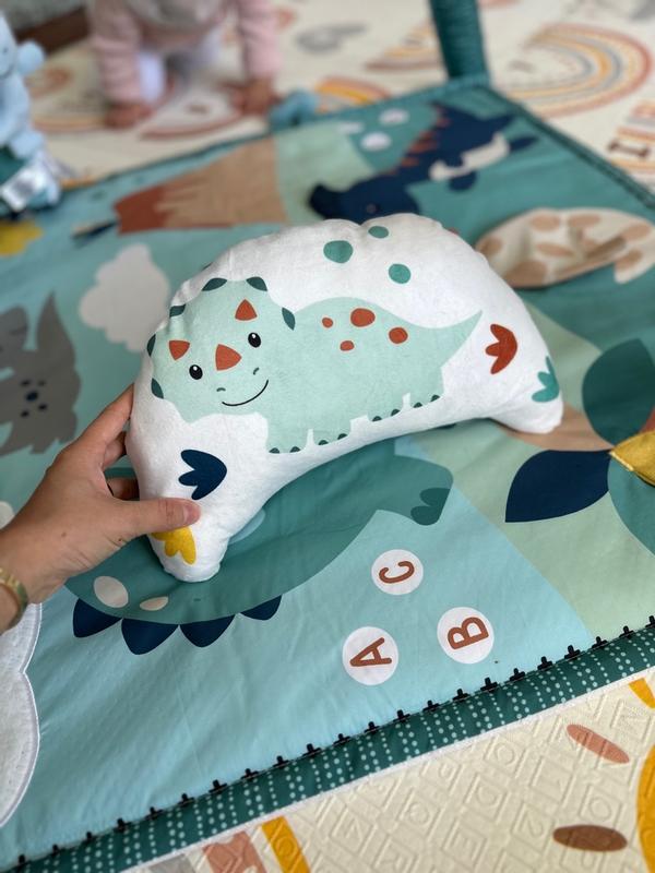 We love our Dino play gym and play mat! I especially love the chic design with dinosaur prints. When it comes to play mats and tummy time, this play mat is durable, versatile, fun and engaging. The mat is beyond soft, so cozy and very comfy. It’s silky soft, smooth, comfy and plush too. It comes with all the basics you’d need for setting your baby up for safe tummy time. This set includes a play mat and an overhanging toy arch. This toy arch features various detachments including: a plush rattle, another plush rattle with a noise maker, a plush squeaker, a plush with a bell, a cube and a mirror. A pillow is also included in this set. Love that it's easily foldable for storage and machine wash friendly. Overall a great play mat to keep your little one entertained and I highly recommend!